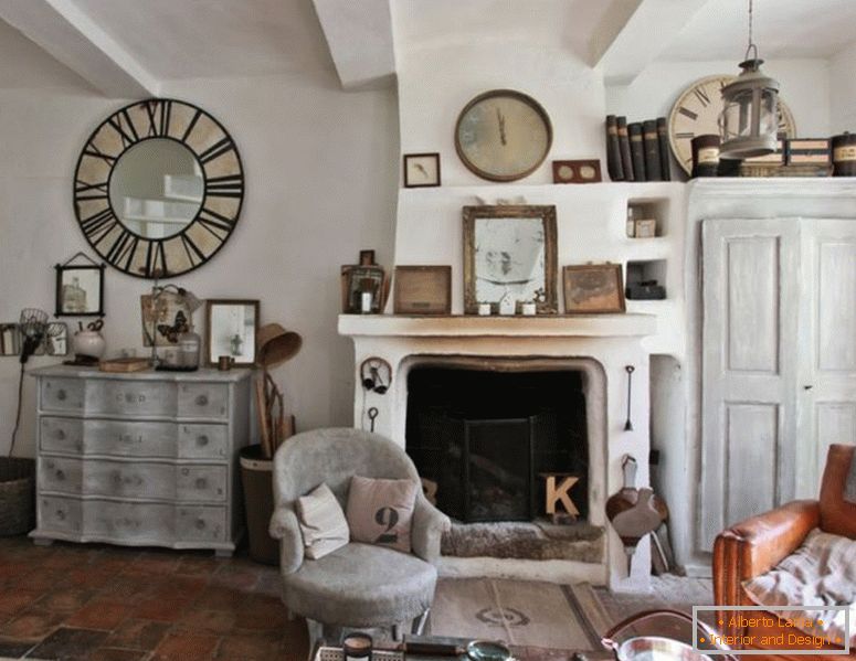 S'il y a une cheminée dans le salon, les assiettes sont idéales pour décorer l'espace au-dessus: de grands éléments de formes variées, y compris des formes de verre, auront fière allure ici.