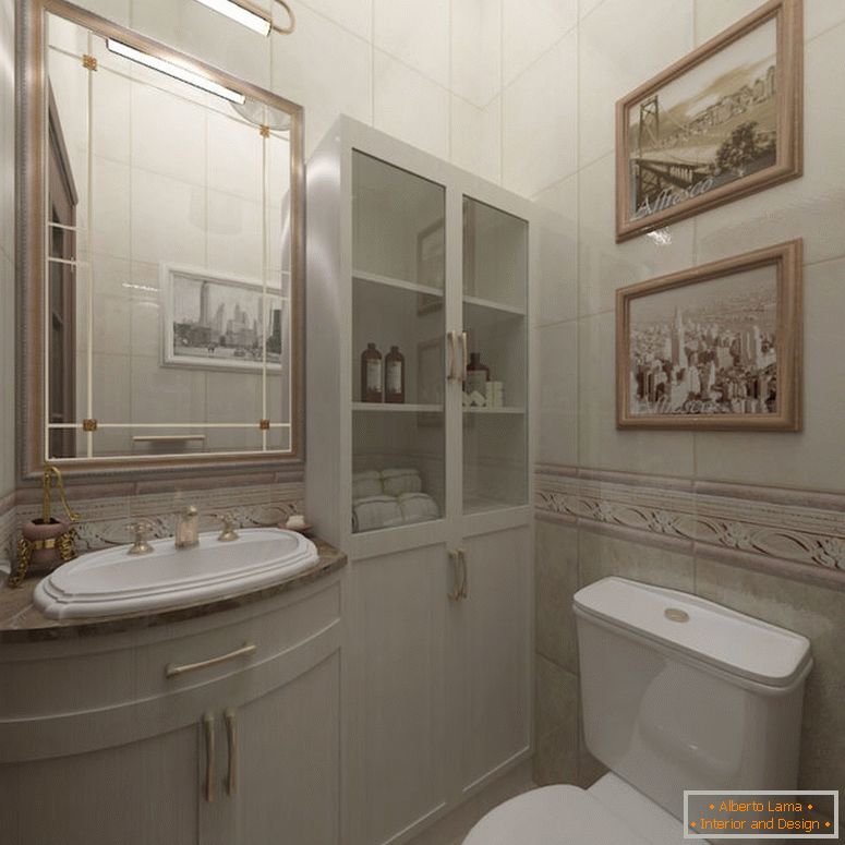 L'un des éléments les plus intéressants et originaux de l'intérieur est le papier peint avec un imprimé floral graphique sur l'un des murs du salon. La salle de bain a une baignoire carrelée blanche et la cuisine est attirée par un tableau unique avec des inscriptions.