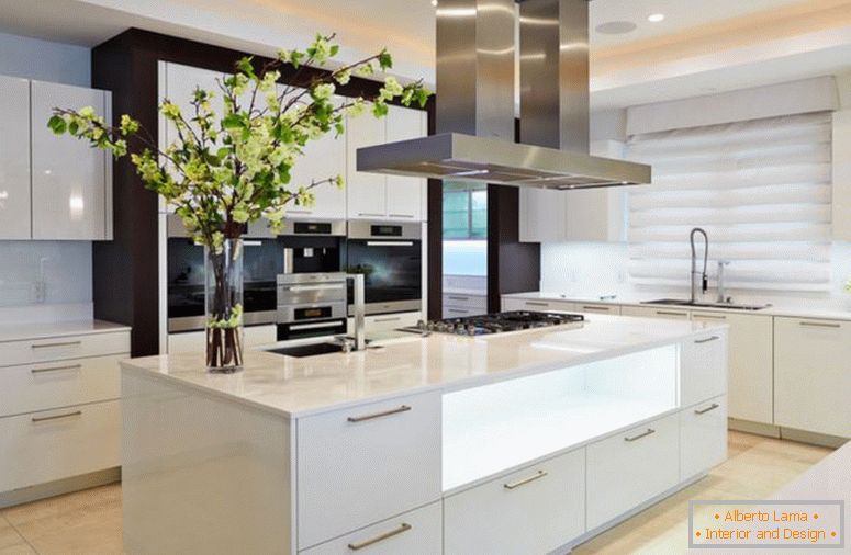 L'intérieur de ce projet est neutre. Comprend une table minimaliste solide, un système de stockage. Tout est soutenu dans des couleurs douces et légères. La lumière du jour passe par une façade coulissante qui, si nécessaire, peut être recouverte de volets en aluminium.