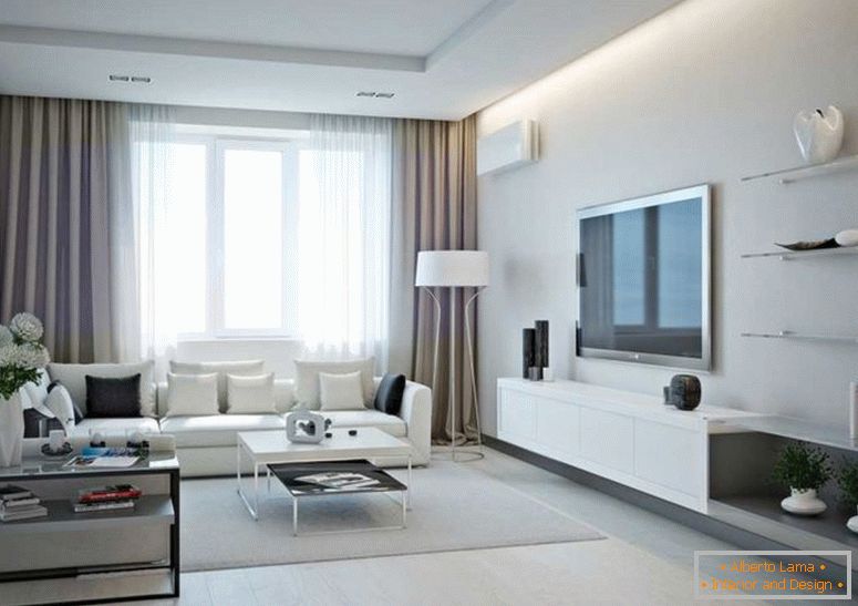 - Souvent, la base est blanche et noire, dans des pourcentages différents. Il est souhaitable d'utiliser des nuances blanches ou claires si la taille de la pièce est petite. Le noir dans ce cas agit comme un cadre de l'ombre de base.