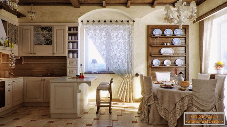 Nous parlerons aujourd'hui du projet de 2011, dans lequel plusieurs idées architecturales apparemment incompatibles sont collectées. Tout d'abord, le style loft est exprimé dans les yeux, avec l'aide de murs en briques rouges et d'un simple coin cuisine dans lequel un mobilier incroyablement original et minimaliste est inscrit, ainsi que des poutres en bois sombre évoquant le style campagnard.