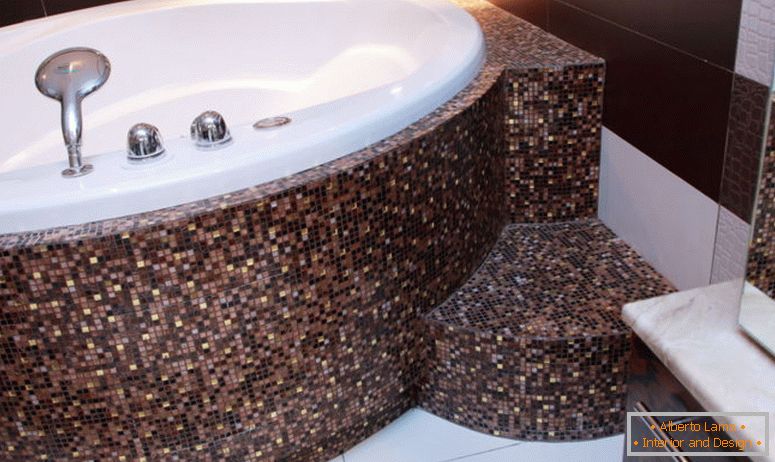 De gros objets volumineux peuvent "fonctionner" dans un petit espace. Un bain solide avec des dimensions choisies strictement à la largeur de la pièce, a fière allure sur le fond d'une fenêtre qui est tendue à la hauteur.