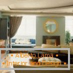 Une pièce en blanc est la plus légère parmi toutes les autres solutions. Il semblera spacieux à n'importe quelle distance. Il semblerait que tout soit simple. Il suffit de choisir des matériaux pour la finition, l'équipement, le mobilier de couleur de neige - et la salle idéale est prête. Mais ici, il y a des pièges. Il est important de rendre la pièce propre à la maison, sinon cela ressemblera à un cabinet dans une institution médicale. Le secret est de choisir le bon décor. En ajoutant un rideau ou un tapis lumineux, vous verrez une option complètement ennuyeuse. Les textiles peuvent être modifiés à chaque fois pour obtenir un nouveau résultat. Un effet intéressant est obtenu si vous jouez avec des nuances de blanc. Supposez que vous peignez la surface des murs en couleur d'ivoire et que vous déposiez une couche d'ombre de la coquille sur le sol. La combinaison idéale sera seulement en cours d'expérimentation - les photos sur les emballages avec de la peinture diffèrent souvent de la réalité.
