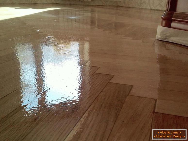 Un stratifié de nuances claires s'adapte au papier peint en tissu. Si les murs sont peints, il est préférable d'utiliser un parquet ou un linoléum avec un motif «d'échecs». Le plancher de remplissage moderne convient uniquement au style des années 80. La cuisine utilise une tuile durable. Un élément obligatoire sur le sol est un tapis rond avec une pile courte. Sa couleur est choisie de manière à ce qu’elle soit en harmonie avec les murs et les meubles.