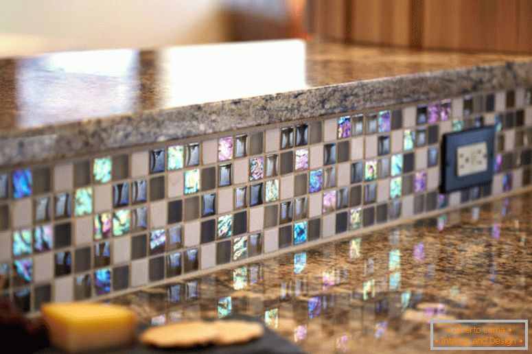 Рассмотрим вариант ретро кухни из промежуточной эпохи на стыке 60-х и 70-х годов. Sexe отделывают керамической плиткой черного и белого цветов. Укладывают кафель в шахматном порядке. Кухонный фартук тоже декорируют плиткой, но меньших размеров и других цветов (сиреневый с мятным). Этот же свежий оттенок зеленого выбирают для кухонного гарнитура. Его фасады лаконичны и не имеют лепных украшений. Яркий красный столик в паре со стульями такого же цвета создают уютную обеденную зону. Обивка выполняется из кожзама, а столешница имеет небольшие светло-серые вкрапления, которые имитируют мрамор необычного оттенка. Бытовые приборы имеют хромированные поверхности. Стены оклеивают специальными моющимися обоями с повторяющимся рисунком. В качестве украшения в комнате расставляют яркую посуду, вешают настенные часы, пару картин или фото.